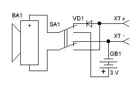 Лампа горит постоянно в неполный накал – скорее всего, дефект во вторичных обмотках или в подключенных к ним цепях. Отпаиваем по одному проводу, идущему от вторичных обмоток к выпрямителя(м). Не перепутать, Кулибин! Чтобы потом не было мучительно больно от неправильной подпайки назад (промаркировать, например, с помощью кусочков липкой малярной ленты). Лампа погасла – значит, с трансформатором все в порядке. Горит – снова тяжко вздыхаем и либо ищем ему замену, либо перематываем. - Определились, что трансформатор в порядке, а дефект в выпрямителях или конденсаторах фильтра. Прозваниваем диоды (желательно отпаять под одному проводу идущему к их выводам, либо выпаять, если это интегральный мост) тестером в режиме омметра на минимальном пределе. Цифровые тестеры в этом режиме часто врут, поэтому желательно использовать стрелочный прибор. Лично я давно пользуюсь прозвонкой-«пищалкой» (рис. 2, 3). Диоды (мост) пробиты или оборваны – меняем. Целые – «звоним» конденсаторы фильтра. Перед измерением их надо разрядить (!!!) через 2-ваттный резистор сопротивлением около 100 Ом. Иначе можно сжечь тестер. Если конденсатор цел – при замыкании стрелка сначала отклоняется до максимума, а потом довольно медленно (по мере заряда конденсатора) «ползет» влево. Меняем подключение щупов. Стрелка сначала зашкаливает вправо (на конденсаторе остался заряд от предыдущего измерения) а потом опять ползет влево. Если есть измеритель емкости и ESR, то весьма желательно использовать его. Пробитые или оборванные конденсаторы меняем.