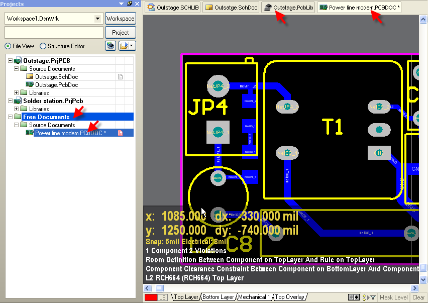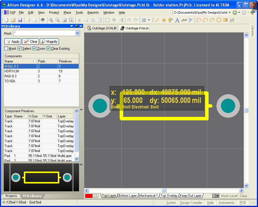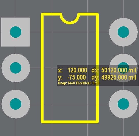 Осталось упомянуть еще один момент, который поможет при разработке платы. В слое Top overlay мы нарисовали контур элемента, который нужен для правильной установки. Часто, просто нет возможности (места) для точного отображения элемента, а компоновать плату по урезанным изображениям, чревато проблемами при монтаже. Выход из этой ситуации следующий.