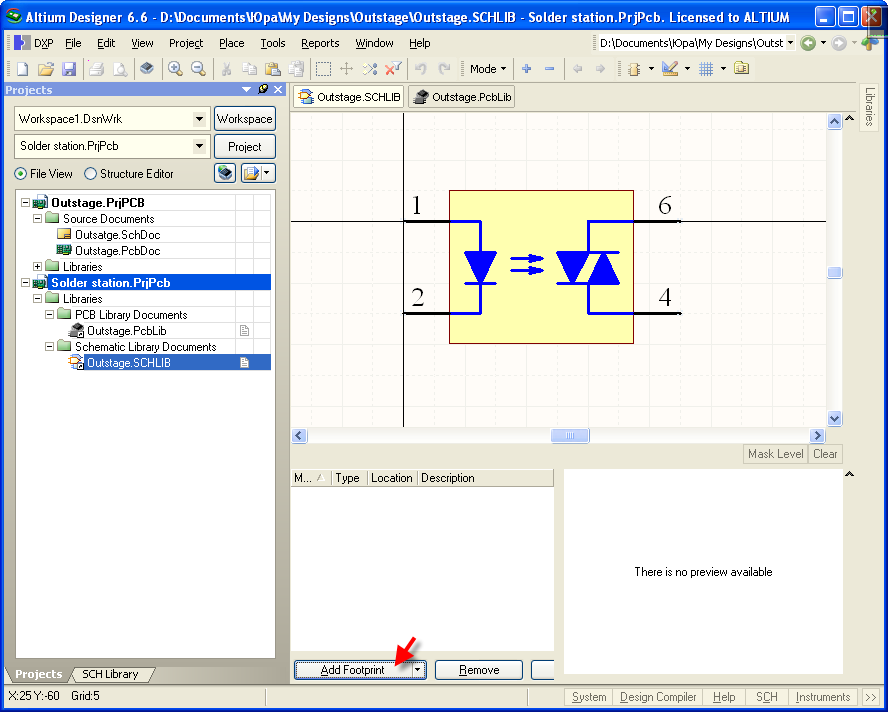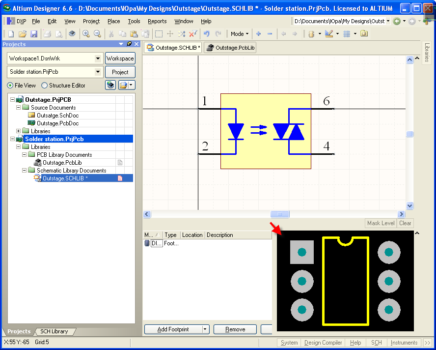 Библиотеку инсталлируем, добавляем на плату (из любого проекта или вновь созданную) компоненты из нее, и все той же операцией копируем их себе в библиотеку. К статье «в комплекте» выложены библиотеки посадочных мест с сайта Altium. Не забываем, сразу прописать, или исправить символу, ссылку на посадочное место. На всякий случай, укажу на возможность использования одного посадочного места, для разных символов.