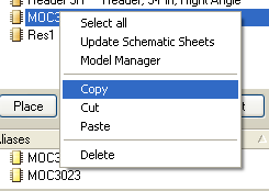 Рассмотрим первый путь. Переходим в библиотеку символов. Щелкаем правой кнопкой на нужном символе в списке и выбираем Copy (рис.38). Далее снова правой кнопкой мыши и выбираем – Paste.
