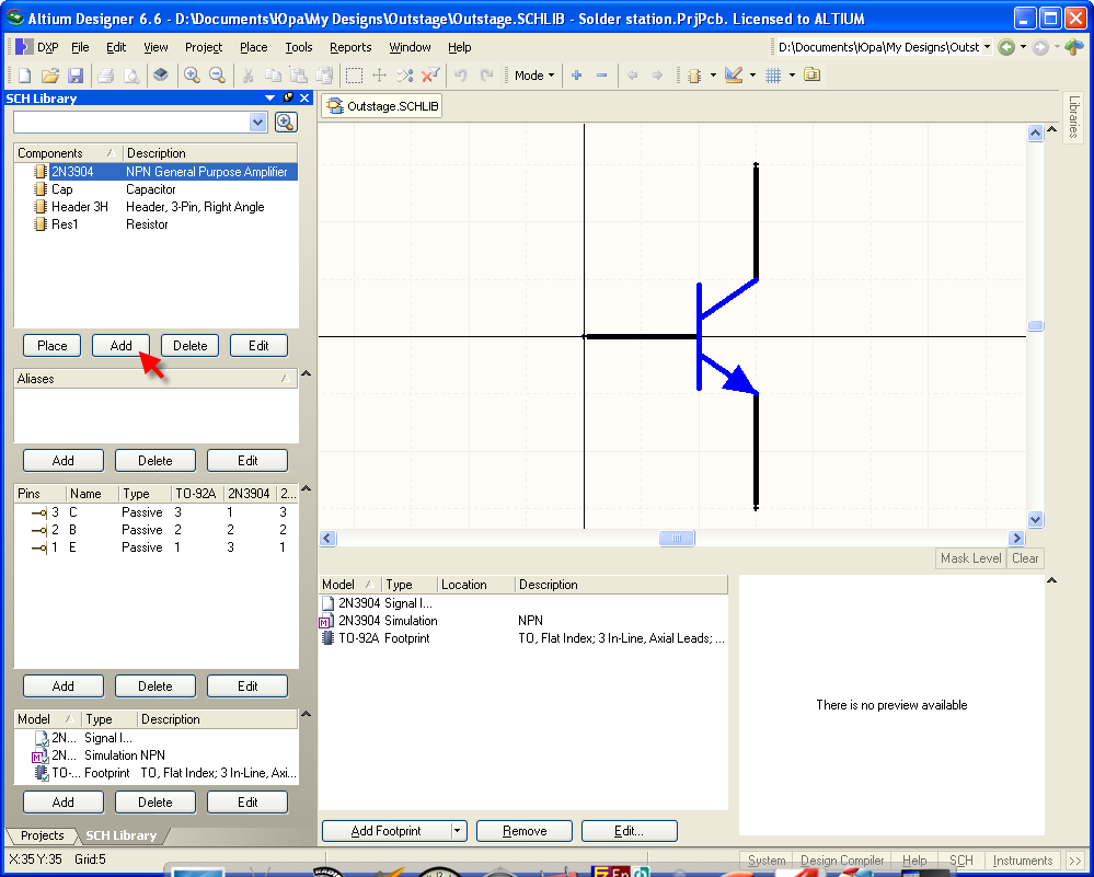 Второй путь. Отличается от первого только источником. Этим источником может быть чужая схема (плата) или библиотека. Для начала, нужно проследить, чтобы была открыта созданная нами библиотека символов.