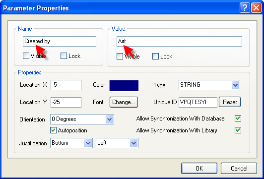 Заполняем поля Name и Value. Посадочное место пока не добавляем, т.к. оно еще не нарисовано. Получаем заполненное окно свойств (рис.8).